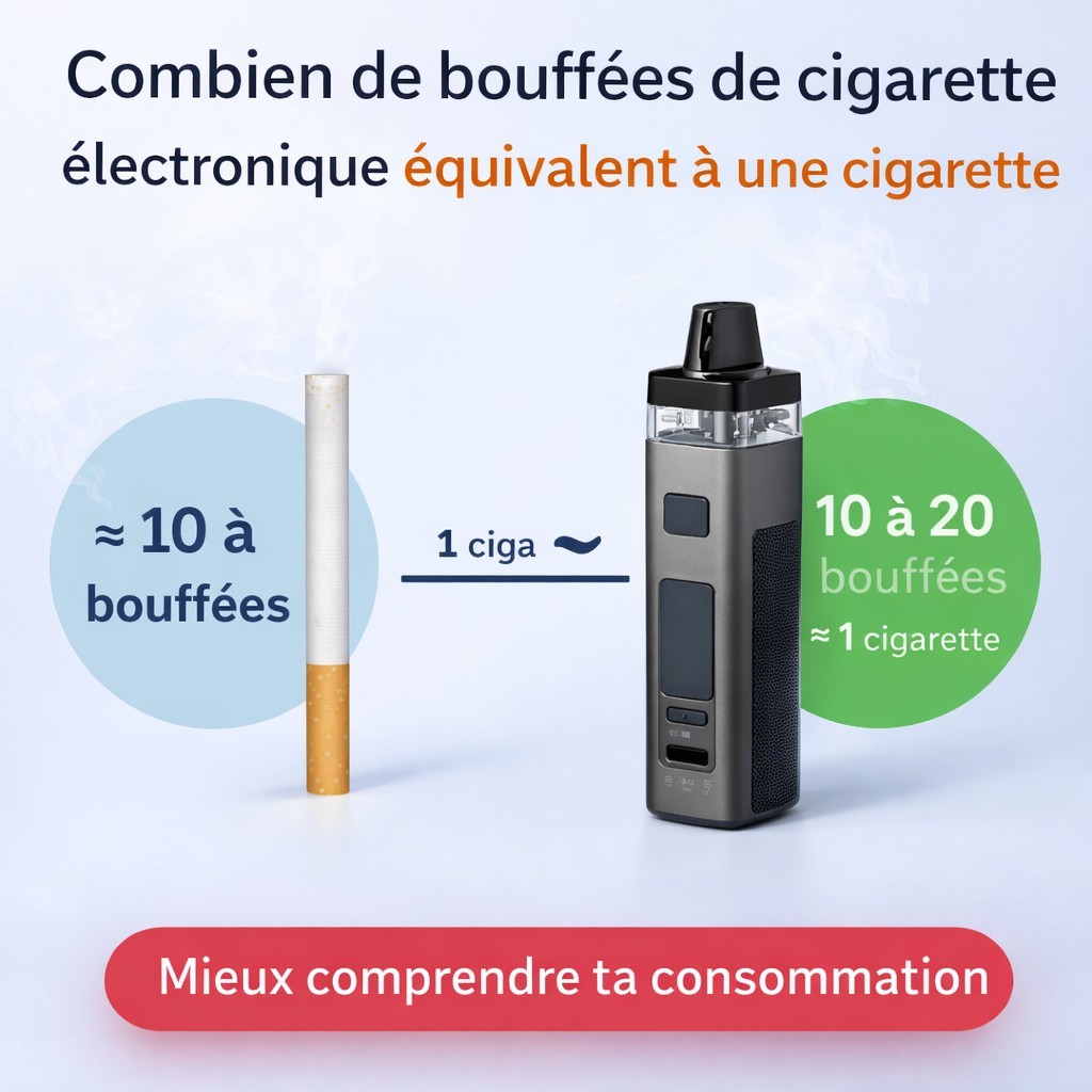 Combien de bouffées de vape équivalent à une cigarette ? person Posté par: Samuel Creation-vap list Dans: Guide complet sur la vape et la cigarette électronique Combien de bouffées de cigarette électronique correspondent à une cigarette ? On t’explique simplement pour mieux comprendre ta consommation. Lire la suite Dimanche Lundi Mardi Mercredi Jeudi Vendredi Samedi Janvier Février Mars Avril Mai Juin Juillet Août Septembre Octobre Novembre Décembre