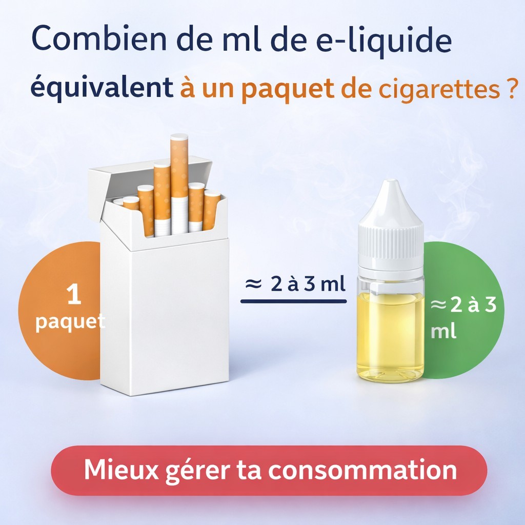 Combien de ml de e-liquide équivalent à un paquet de cigarettes ? person Posté par: Samuel Creation-vap list Dans: Guide complet sur la vape et la cigarette électronique Combien de ml de e-liquide correspondent à un paquet de cigarettes ? On t’explique simplement pour mieux gérer ta consommation. Lire la suite Dimanche Lundi Mardi Mercredi Jeudi Vendredi Samedi Janvier Février Mars Avril Mai Juin Juillet Août Septembre Octobre Novembre Décembre