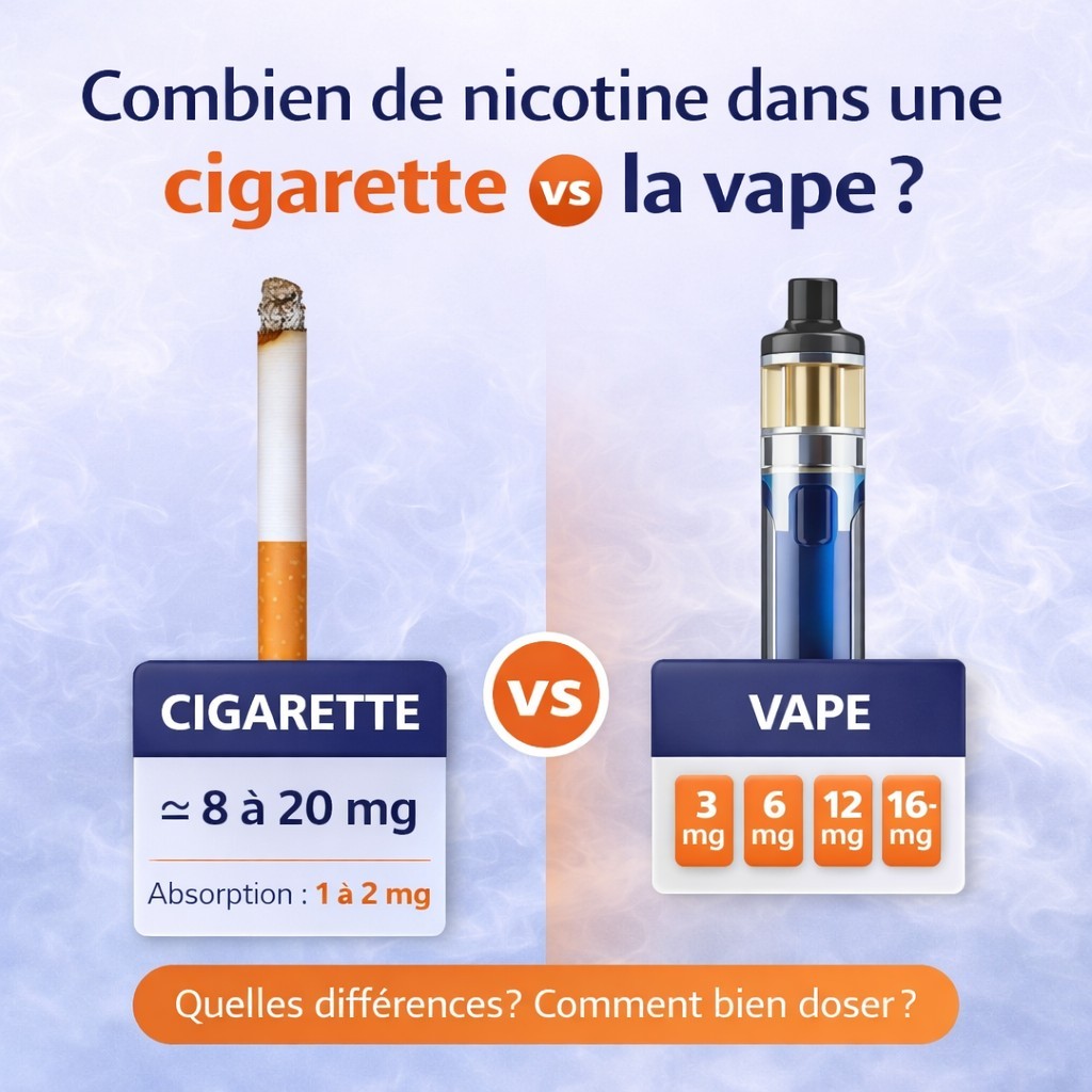 Combien de nicotine dans une cigarette vs la vape ? person Posté par: Samuel Creation-vap list Dans: Guide complet sur la vape et la cigarette électronique Combien de nicotine dans une cigarette comparé à la vape ? On t’explique les différences pour mieux comprendre ton dosage. Lire la suite Dimanche Lundi Mardi Mercredi Jeudi Vendredi Samedi Janvier Février Mars Avril Mai Juin Juillet Août Septembre Octobre Novembre Décembre
