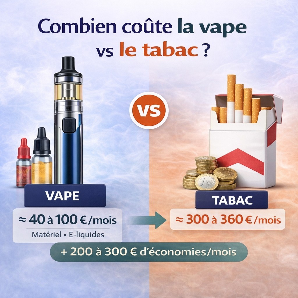 Combien coûte la vape vs le tabac ? Comparatif complet person Posté par: Samuel Creation-vap list Dans: Guide complet sur la vape et la cigarette électronique Combien coûte la vape comparé au tabac ? On t’explique les économies réelles que tu peux faire. Lire la suite Dimanche Lundi Mardi Mercredi Jeudi Vendredi Samedi Janvier Février Mars Avril Mai Juin Juillet Août Septembre Octobre Novembre Décembre