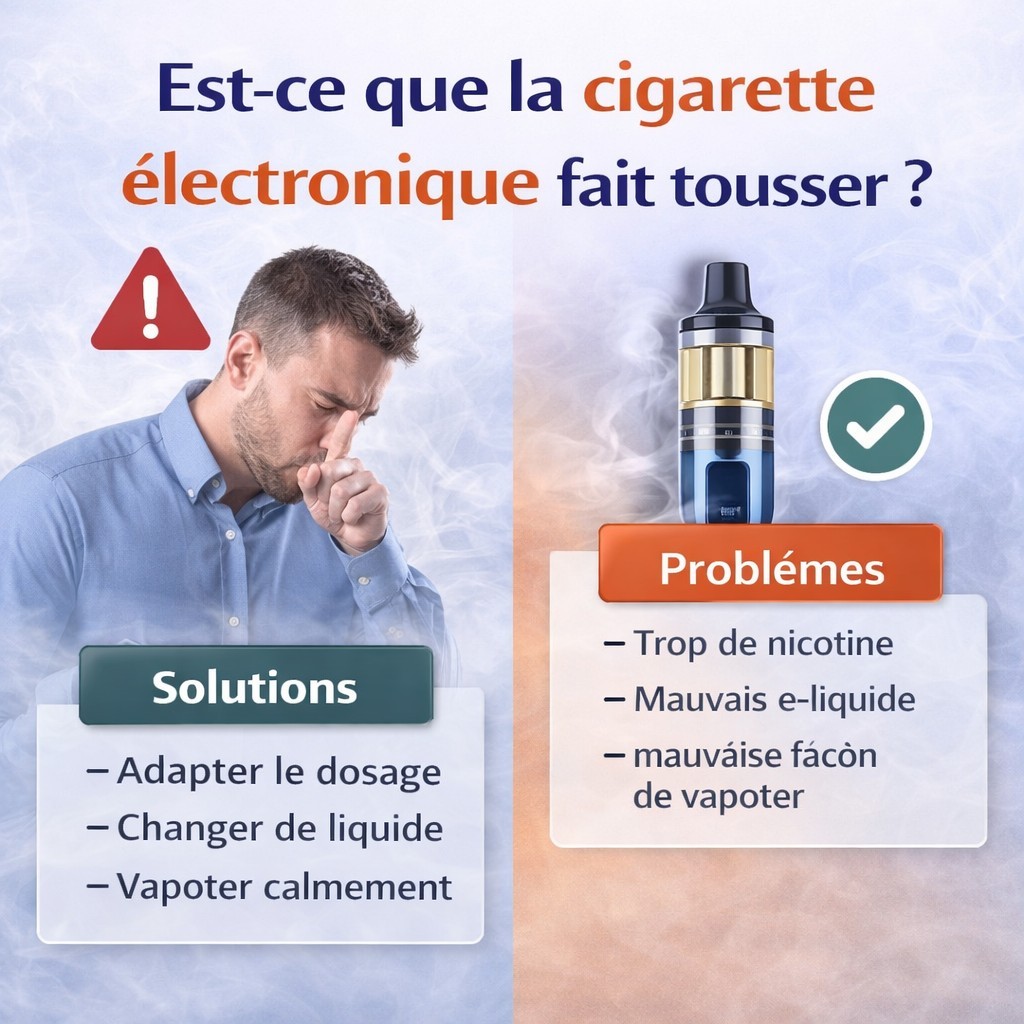 Est-ce que la cigarette électronique fait tousser ? person Posté par: Samuel Creation-vap list Dans: Guide complet sur la vape et la cigarette électronique Tu tousses avec la cigarette électronique ? On t’explique pourquoi et comment éviter ça facilement. Lire la suite Dimanche Lundi Mardi Mercredi Jeudi Vendredi Samedi Janvier Février Mars Avril Mai Juin Juillet Août Septembre Octobre Novembre Décembre